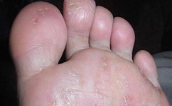 脚气的明显症状是患者会感到瘙痒难忍,由于瘙痒强烈患者往往会忍不住去抓它。脚气的出现还会伴随水疱、脱皮、皲裂、渗出及脚臭等诸多症状。另外,脚气的出现还会引起自身其它部位出现真菌感染,如手癣、体股癣和头癣等。如果长时间等不到治疗还会导致甲癣,严重的还会引起鼻炎、丹毒等系统感染。