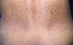鱼鳞病多发生于人体屈侧部位,往往表现为全身对称性皮损,患处皮肤颜色暗红、光滑微亮,且有一定的增厚。红色在几个月后会自行消退,但是会导致皮肤局部角化,特别在皱褶处。鱼鳞病症状渐渐明显后,可发现患处皮肤呈鱼鳞状或蛇皮状,且伴有脱屑,而且这种症状在冬季比较严重,夏季稍微减轻,如此周而复始的循环。