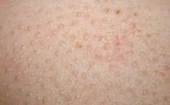 毛周角化症的症状表现有哪些?典型的症状表现为:多发性针尖大小的毛囊角化性丘疹,主要分布于上臂,股外侧及臀部,有时可见面部损害,尤其在儿童多见。损害通常在冬季明显,夏季好转。病因不明,可能与常染色体显性遗传有关。